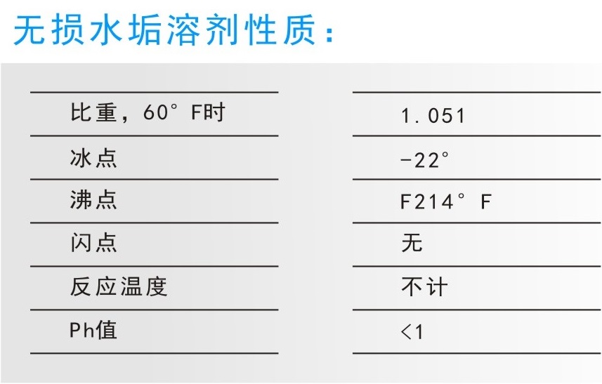 無損水垢溶劑的特點: