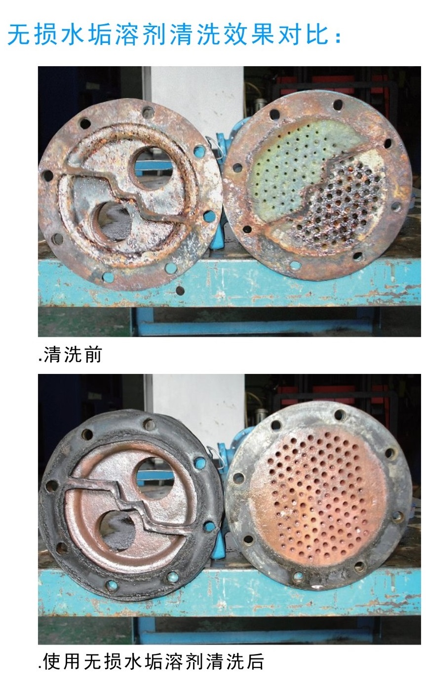 使用無損水垢溶劑好處:提供了壹個很好的清潔方法,不需要額外的花費用去拆卸裝備;在壹些應用情況下,甚至可以保證清洗時機器仍在正常工作;此款清洗劑可以清洗到壹些拐角和小縫隙等難以清理的地方